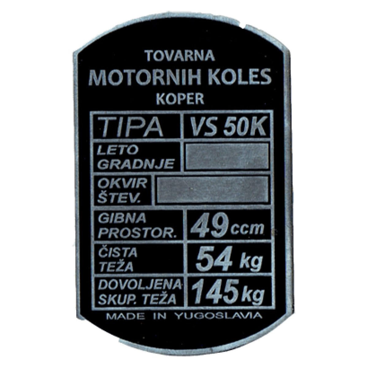 Tablica ID Tomos VS 50 K